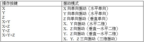 5、三維振動臺操作,依次按“X方向”、“Y方向”、“Z方向”開關,振動臺開始振動。