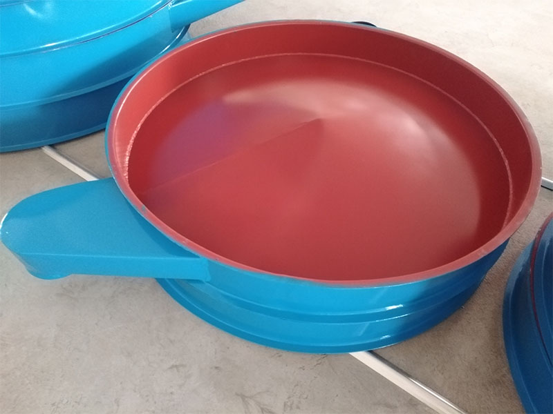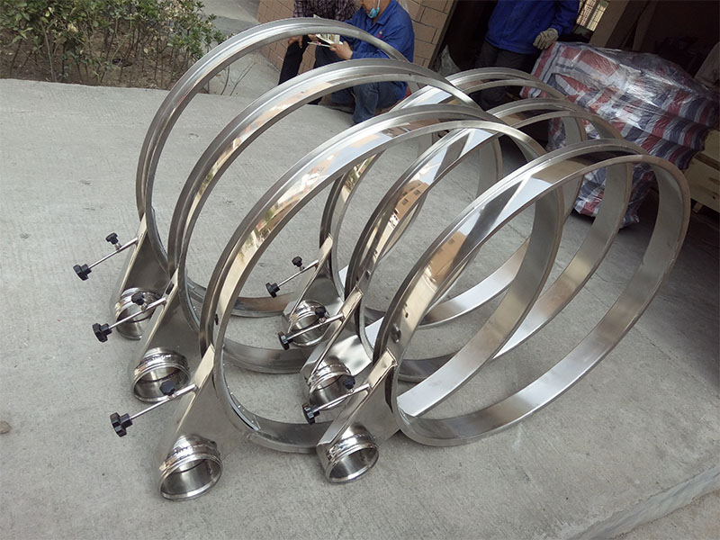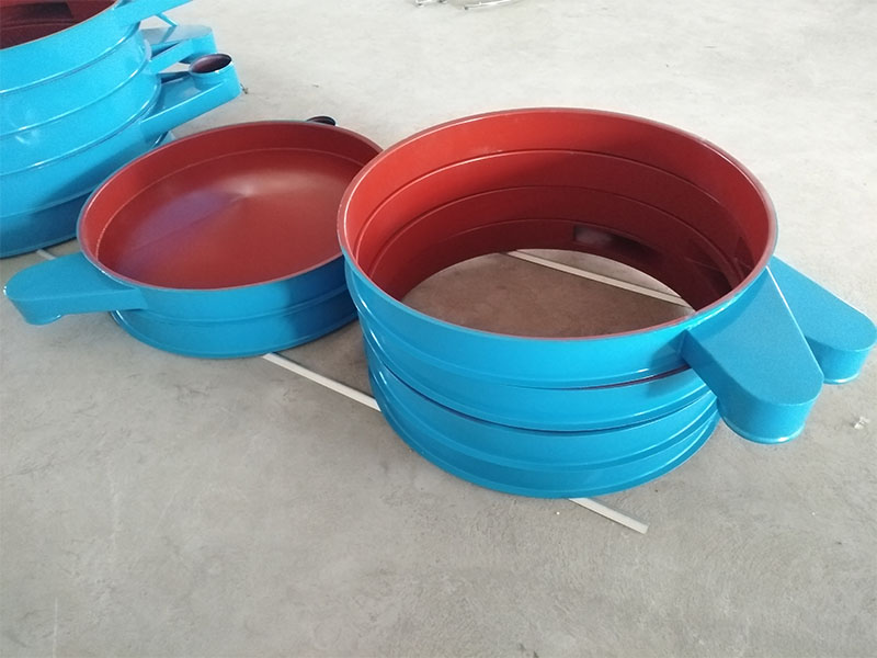 旋振篩中框是旋振篩不可缺少的部分,主要起密封、收集物料及排料的作用,除防粉塵溢散及保護物料受外界污染,使整個生產在封閉條件下進行外,還可以收集物料并把該層篩網的篩上物從出料口中排出,其材質主要有不銹鋼和普通碳鋼。同時我們針對難篩物料及篩上物少等特殊情況,設計出閘門型中框,是在中框的出料口處增加了拉桿式閘門,在生產過程中可以根據物料篩分情況進行定時放料,提高透網率,可以根據客戶需要在上蓋上開觀察孔,保證在生產的過程中隨時觀察物料運行情況;此外我公司還可以根據用戶需要進行特殊設計。